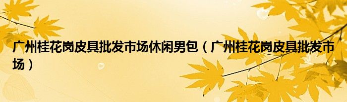 广州桂花岗皮具批发市场休闲男包,广州桂花岗皮具批发市场这个很多人还不知道,小飞来为大家解答以上的问题。现在让我们一起来看看吧!