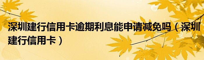 深圳建行信用卡逾期利息能申请减免吗(深圳建行信用卡)