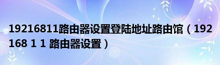 大家好,慧慧来为大家解答以上问题,19216811路由器设置登陆地址路由馆,192 168 1 1 路由器设置很多人还不知道,现在让我们一起来看看吧!