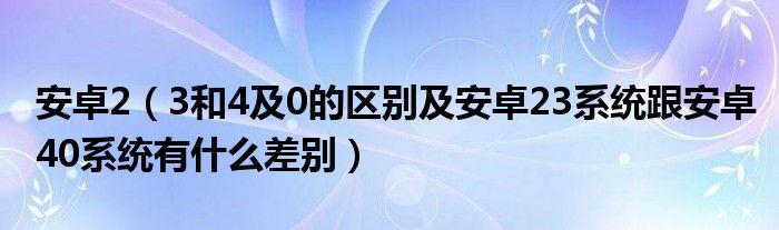大家好,小常来为大家解答以上问题。安卓2,3和4及0的区别及安卓23系统跟安卓40系统有什么差别很多人还不知道,现在让我们一起来看看吧!