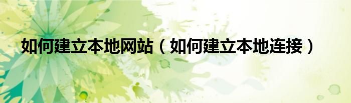大家好,慧慧来为大家解答以上问题,如何建立本地网站,如何建立本地连接很多人还不知道,现在让我们一起来看看吧!