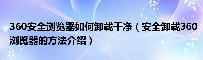 大家好,今天小悦来为大家解答以上问题。360安全浏览器如何卸载干净,安全卸载360浏览器的方法介绍很多人还不知道,现在让我们一起来看看吧!