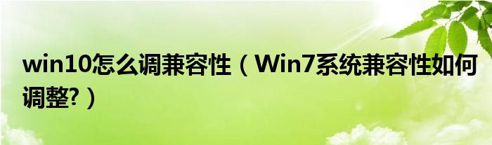 大家好,今天小悦来为大家解答以上问题。win10怎么调兼容性,Win7系统兼容性如何调整?很多人还不知道,现在让我们一起来看看吧!