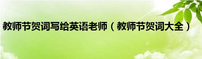 大家好,慧慧来为大家解答以上问题,教师节贺词写给英语老师,教师节贺词大全很多人还不知道,现在让我们一起来看看吧!