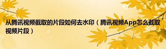 大家好,今天小悦来为大家解答以上问题。从腾讯视频截取的片段如何去水印,腾讯视频App怎么截取视频片段很多人还不知道,现在让我们一起来看看吧!