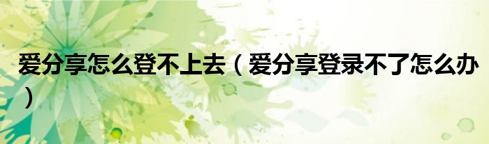 大家好,跳跳为你解答以上问题。爱分享怎么登不上去,爱分享登录不了怎么办这个问题很多人还不知道,现在让我们一起来看看吧!