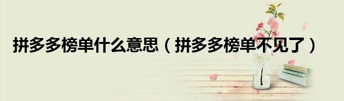 大家好,跳跳为你解答以上问题。拼多多榜单什么意思,拼多多榜单不见了这个问题很多人还不知道,现在让我们一起来看看吧!