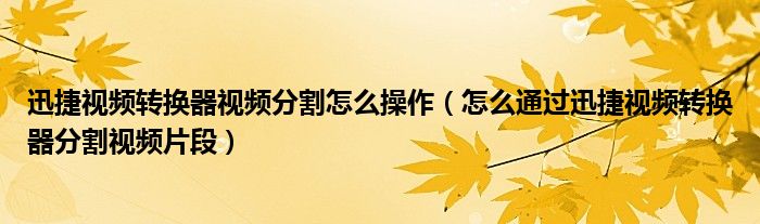 以上就是怎么通过迅捷视频转换器分割视频片段的方法。