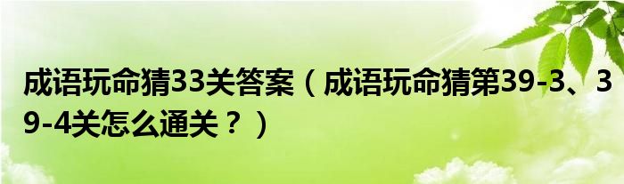 以上就是小编为大家介绍的成语玩命猜第39-3、39-4关的通关方法,希望能帮到你~