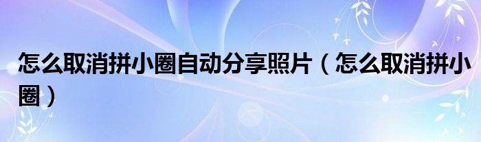 大家好,跳跳为你解答以上问题。怎么取消拼小圈自动分享照片,怎么取消拼小圈这个问题很多人还不知道,现在让我们一起来看看吧!