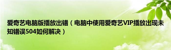 大家好,今天小悦来为大家解答以上问题。爱奇艺电脑版播放出错,电脑中使用爱奇艺VIP播放出现未知错误504如何解决很多人还不知道,现在让我们一起来看看吧!