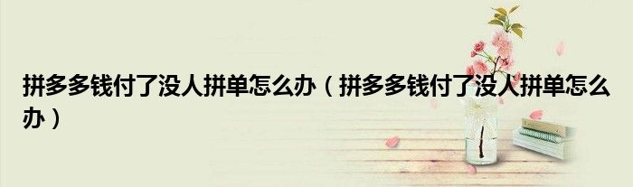 大家好,跳跳为你解答以上问题。拼多多钱付了没人拼单怎么办,拼多多钱付了没人拼单怎么办这个问题很多人还不知道,现在让我们一起来看看吧!
