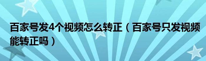 大家好,跳跳为你解答以上问题。百家号发4个视频怎么转正,百家号只发视频能转正吗这个问题很多人还不知道,现在让我们一起来看看吧!