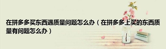 大家好,跳跳为你解答以上问题。在拼多多买东西遇质量问题怎么办,在拼多多上买的东西质量有问题怎么办这个问题很多人还不知道,现在让我们一起来看看吧!