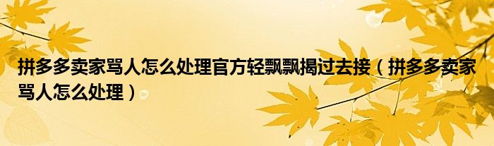 大家好,跳跳为你解答以上问题。拼多多卖家骂人怎么处理官方轻飘飘揭过去接,拼多多卖家骂人怎么处理这个问题很多人还不知道,现在让我们一起来看看吧!