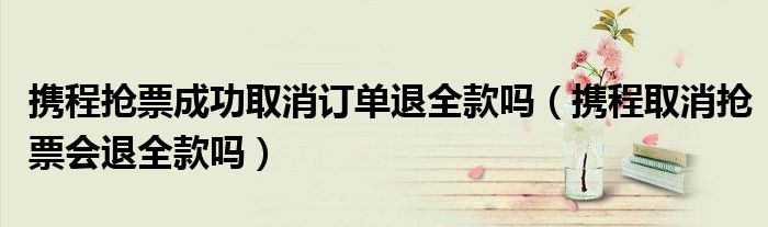 大家好,跳跳为你解答以上问题。携程抢票成功取消订单退全款吗,携程取消抢票会退全款吗这个问题很多人还不知道,现在让我们一起来看看吧!