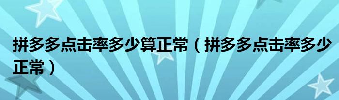 大家好,跳跳为你解答以上问题。拼多多点击率多少算正常,拼多多点击率多少正常这个问题很多人还不知道,现在让我们一起来看看吧!