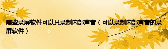 大家好,跳跳为你解答以上问题。哪些录屏软件可以只录制内部声音,可以录制内部声音的录屏软件这个问题很多人还不知道,现在让我们一起来看看吧!