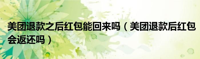 大家好,跳跳为你解答以上问题。美团退款之后红包能回来吗,美团退款后红包会返还吗这个问题很多人还不知道,现在让我们一起来看看吧!