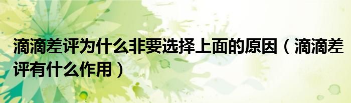 大家好,跳跳为你解答以上问题。滴滴差评为什么非要选择上面的原因,滴滴差评有什么作用这个问题很多人还不知道,现在让我们一起来看看吧!