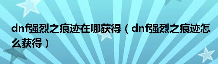 关于dnf强烈之痕迹在哪获得,dnf强烈之痕迹怎么获得这个很多人还不知道,今天菲菲来为大家解答以上的问题,现在让我们一起来看看吧!