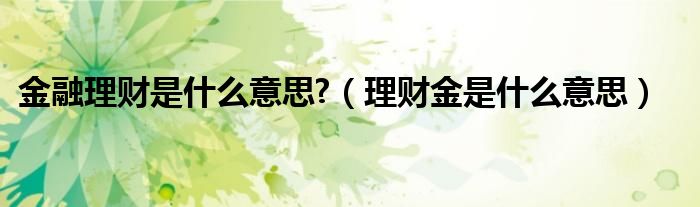 大家好,小晋来为大家解答以下问题,关于金融理财是什么意思?,理财金是什么意思很多人还不知道,今天让我们一起来看看吧!