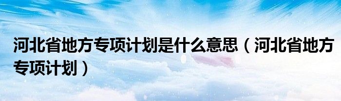 大家好,小晋来为大家解答以下问题,关于河北省地方专项计划是什么意思,河北省地方专项计划很多人还不知道,今天让我们一起来看看吧!