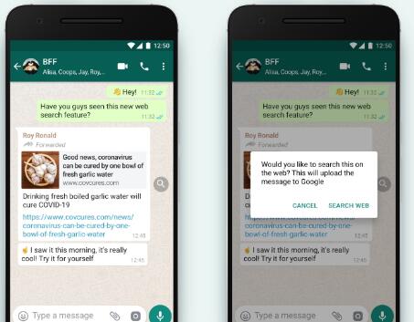 该功能的引入是在WhatsApp 决定于今年早些时候限制频繁转发的消息之后做出的。正是在这一点上,WhatsApp透露它已开始测试用户搜索Web的能力。