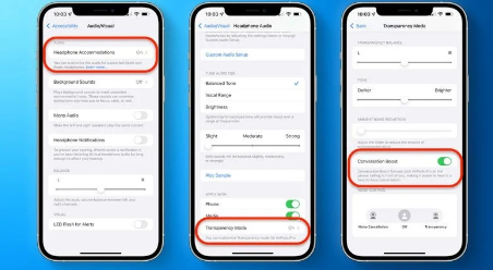 但是,该功能没有简单的切换。要启用对话增强,请按照以下步骤操作:设置>辅助功能>视听>耳机调节。在那里,选择透明模式并启用对话增强。当然,您的AirPodsPro必须更新至固件版本4A400。