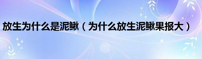 大家好,小晋来为大家解答以下问题,关于放生为什么是泥鳅,为什么放生泥鳅果报大很多人还不知道,今天让我们一起来看看吧!