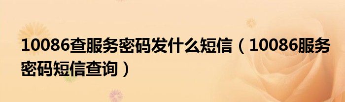 大家好,小晋来为大家解答以下问题,关于10086查服务密码发什么短信,10086服务密码短信查询很多人还不知道,今天让我们一起来看看吧!