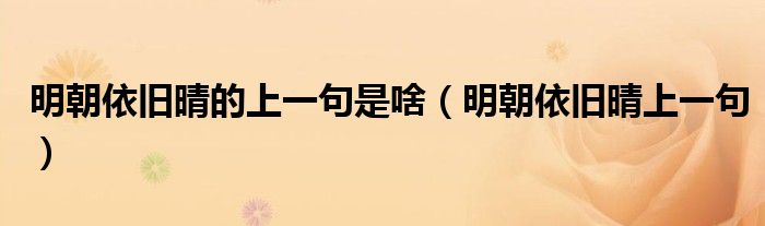 大家好,小晋来为大家解答以下问题,关于明朝依旧晴的上一句是啥,明朝依旧晴上一句很多人还不知道,今天让我们一起来看看吧!