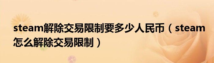 steam解除交易限制要多少人民币(steam怎么解除交易限制)