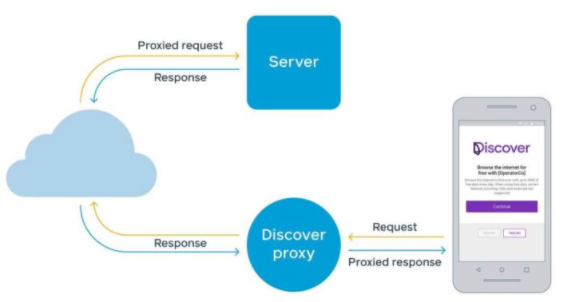所有用户的流量都将通过Discover代理服务器进行路由。通过代理服务器时,它将删除对数据不敏感的(音频,视频)流量。代理服务器代表用户获取网页并将其传递到他们的设备。