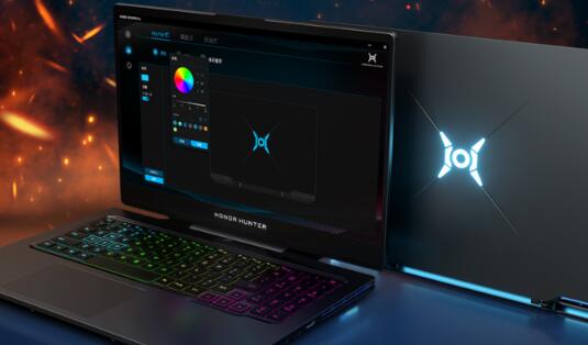 作为游戏玩家的笔记本电脑,设计与19.9毫米 金属机箱,盖子上的RGB Hunter徽标以及键盘和通风口的彩色背光保持一致。