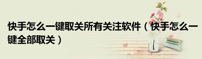大家好,小晋来为大家解答以下问题,关于快手怎么一键取关所有关注软件,快手怎么一键全部取关很多人还不知道,今天让我们一起来看看吧!