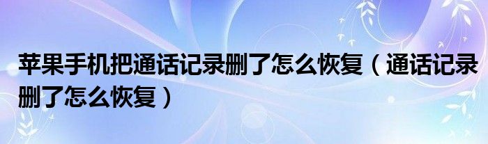 大家好,小晋来为大家解答以下问题,关于苹果手机把通话记录删了怎么恢复,通话记录删了怎么恢复很多人还不知道,今天让我们一起来看看吧!