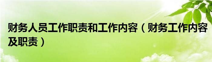 关于财务人员工作职责和工作内容,财务工作内容及职责这个很多人还不知道,今天菲菲来为大家解答以上的问题,现在让我们一起来看看吧!