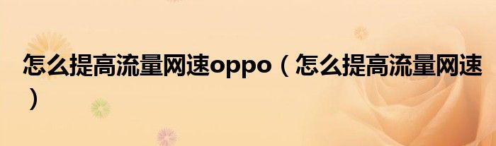 大家好,小晋来为大家解答以下问题,关于怎么提高流量网速oppo,怎么提高流量网速很多人还不知道,今天让我们一起来看看吧!