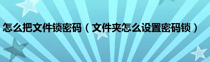 关于怎么把文件锁密码,文件夹怎么设置密码锁这个很多人还不知道,今天菲菲来为大家解答以上的问题,现在让我们一起来看看吧!