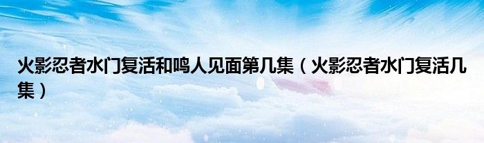 大家好,小晋来为大家解答以下问题,关于火影忍者水门复活和鸣人见面第几集,火影忍者水门复活几集很多人还不知道,今天让我们一起来看看吧!