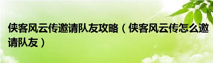 1、侠客风云传怎么邀请队友要想邀请队友,首先要和你的角色有亲密的友谊。