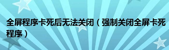 大家好,小晋来为大家解答以下问题,关于全屏程序卡死后无法关闭,强制关闭全屏卡死程序很多人还不知道,今天让我们一起来看看吧!