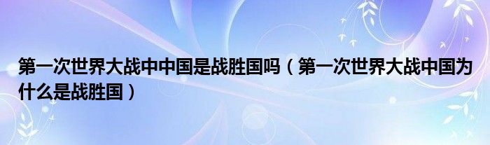 关于第一次世界大战中中国是战胜国吗,第一次世界大战中国为什么是战胜国这个很多人还不知道,今天菲菲来为大家解答以上的问题,现在让我们一起来看看吧!
