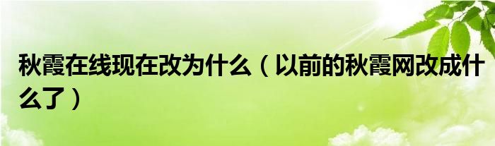 大家好,小晋来为大家解答以下问题,关于秋霞在线现在改为什么,以前的秋霞网改成什么了很多人还不知道,今天让我们一起来看看吧!