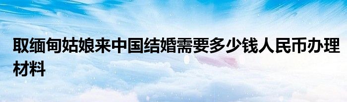 取缅甸姑娘来中国结婚需要多少钱人民币办理材料