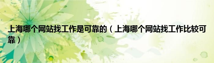 关于上海哪个网站找工作是可靠的,上海哪个网站找工作比较可靠这个很多人还不知道,今天菲菲来为大家解答以上的问题,现在让我们一起来看看吧!