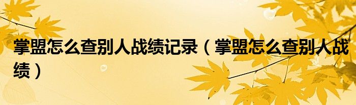 大家好,小晋来为大家解答以下问题,关于掌盟怎么查别人战绩记录,掌盟怎么查别人战绩很多人还不知道,今天让我们一起来看看吧!