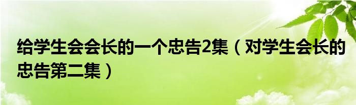 关于给学生会会长的一个忠告2集,对学生会长的忠告第二集这个很多人还不知道,今天菲菲来为大家解答以上的问题,现在让我们一起来看看吧!