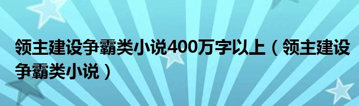 大家好,小晋来为大家解答以下问题,关于领主建设争霸类小说400万字以上,领主建设争霸类小说很多人还不知道,今天让我们一起来看看吧!